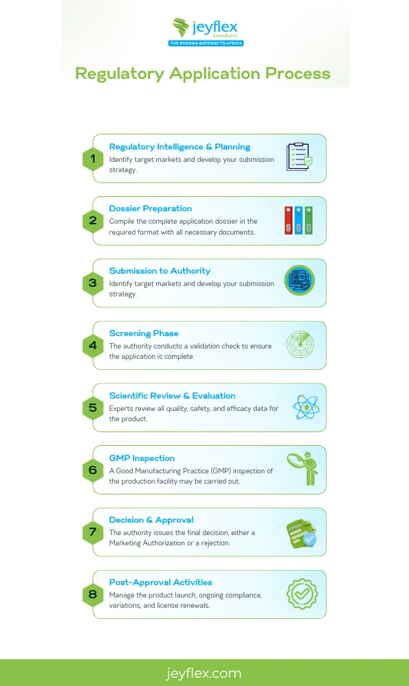 In Africa, each market has its own evolving regulations. In Kenya, for example, the Pharmacy and Poisons Board (PPB) is the key authority. At Jeyflex, we navigate these frameworks efficiently, so you stay compliant while reaching patients faster.